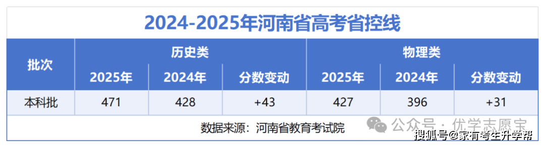 上表显示的是2024-2025年河南省高考省控线年汗青类和物理类的省控线均呈现上涨趋向,此中汗青类上涨了43分,物理类上涨了31分,由此能够看出汗青类上涨幅度更大。这种全面性的分数上涨大多取河南省初次实施新高考模式、出格是小科目采用赋分轨制亲近相关。当然也遭到高考总人数、高校招生打算、试卷难度等多项要素的影响。