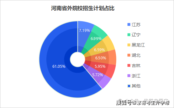 河南本省毫无疑问占领总招生打算的次要地位,有24,5343个打算,占66。21%。河南省内共有66所本科院校(含分校),此中211仅1所(郑州大学),双一流2所(郑州大学和河南大学),面临诸多河南学生,明显会呈人浮于事的形势。下图为除河南省外各省份正在河南省招生打算占比,排行前3的别离是江苏(占7。19%)、辽宁(占6。99%)和(占6。59%)。此中,江苏省有9002个招生打算,有8750招生打算,省有8254个招生打算。江苏高校数量较多,能赐与河南较多招生打算,也反映了其教育资本对外的辐射能力。辽宁和招生打算均跨越8000人。高校招生打算的添加可能是由于河南做为高考大省,是高校进行宣传和招生的主要区域。添加正在河南的登科人数,有益于高校吸引更多优良的河南学子报考,提拔学校的生源质量。