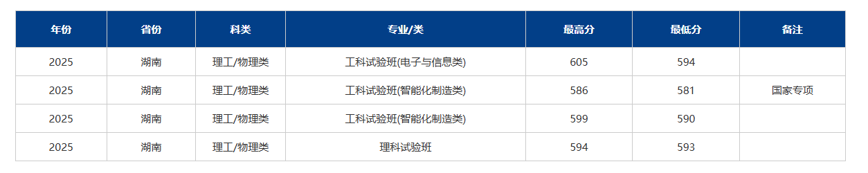 但实力再强,登科要看分数。按照近两年湖南工科试验班登科环境:2025年最低分为594分,目前的580分,比往年最低线低了了一些。若是按分数投档,风险比力高;但更环节的是位次,而不是分数,每年分数线浮动很大,看位次才是焦点。若本年的位次取上理过往登科位次差距不大,那“卡线进”的概率是存正在的;若位次较着偏后,就容易滑档。