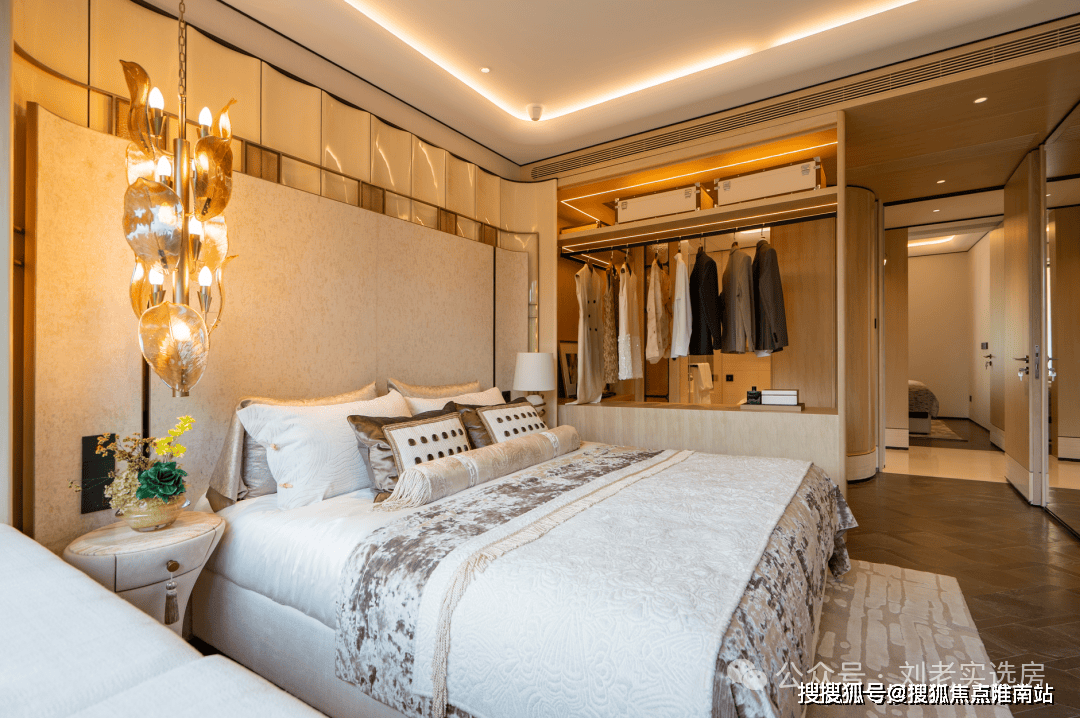 更让人冷艳的是绿城对工艺美学的极致逃求,诸多看似细微却极为耗材、施工难度高的细节,恰好是它超越顶豪的底气这可能是我见过弧形元素最多的样板间,吊顶、客堂墙面及卧室布景墙均采用大量曲面处置,涵盖木饰面取奢石等多种材质弧形工艺,即便工序复杂且成本昂扬,但绿城仍落实,只为业从更高级的利用体验